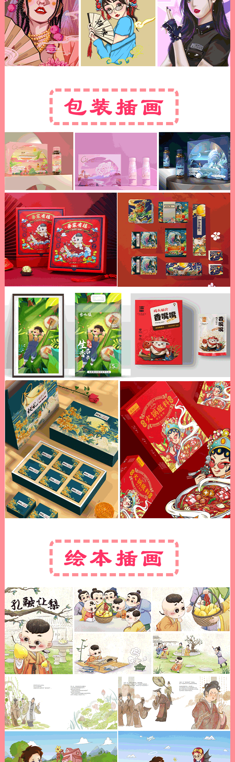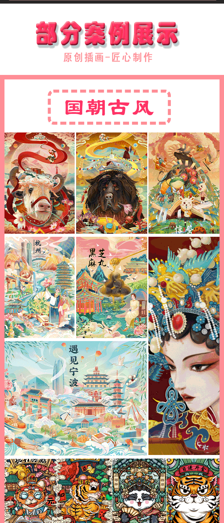 首页-插画设计-手绘插画设计ai代画国潮包装海报卡通ip形象头像绘本漫画约稿定制
